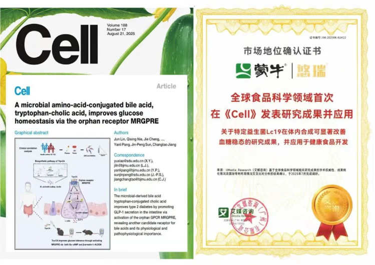 蒙牛自主研发的益生菌菌株Lc19获国际顶刊《CELL》刊登