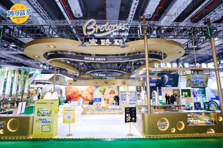 在六大企业商业展中,食品及农产品展区再次成为行业展示前沿成果、新品发布的重要“秀场”。作为全球乳业领军企业,蒙牛集团旗下奶酪品牌妙可蓝多,再度携手其源自澳大利亚的原制奶酪品牌“宝酪斯”亮相,成为会场焦点。