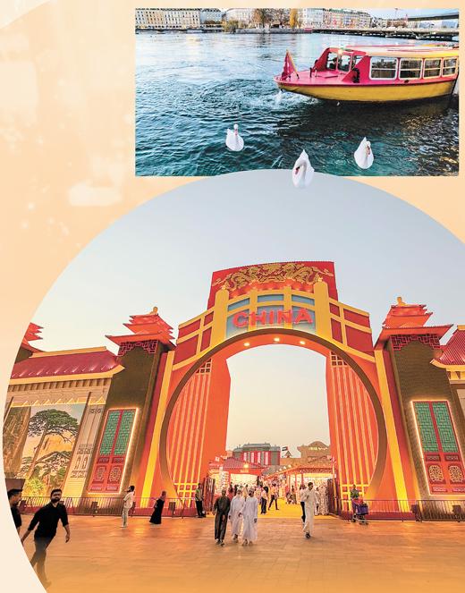 下图:阿联酋迪拜地球村于每年10月到次年4月下午4时至晚上12时运营,目前已发展成为拥有30个国家主题展馆,集美食、集市、娱乐设施和文化演出为一体的休闲目的地。图为迪拜地球村中国主题展馆。
