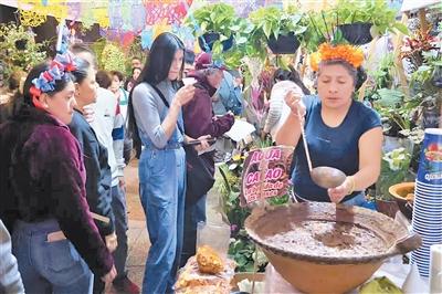 改革大道是墨西哥首都墨西哥城的主要商业街,这里的夜市为都市日常增添了浓郁的烟火气息与多元文化氛围。图为一处可可饮料摊位。