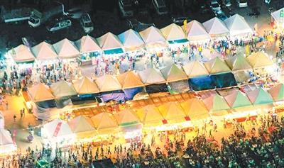柬埔寨金边夜市是位于金边市中心的露天集市,以售卖各种当地小吃、手工艺品和服饰闻名。图为金边夜市俯拍。