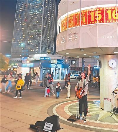 德国首都柏林以多元文化著称,艺术生活是该市“夜经济”中最为重要的一环。图为柏林亚历山大广场世界钟下,街头艺人正在纵情高歌。