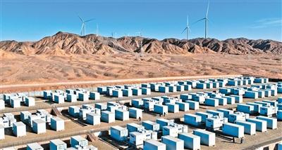 近年来,甘肃省张掖市高台县凭借风光资源优势,大力发展新能源产业。图为高台县北部滩华景丝路独立储能电站项目现场,工程建设者们进行储能电池集装仓的调试和场地整理。