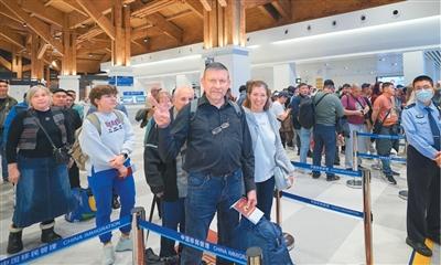 日前,外籍旅客在海南三亚凤凰国际机场准备办理入境手续。