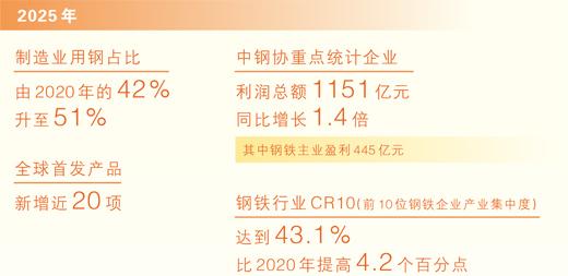 “我国历史上首次制造业用钢超过了建筑业用钢,这是钢铁行业主动适应需求变化,推动产品提质升级的结果。”中国钢铁工业协会副会长兼秘书长姜维说,在“十四五”时期,我国钢材自给率基本达到100%,高质量、高水平保障国民经济发展对钢铁的需求。
