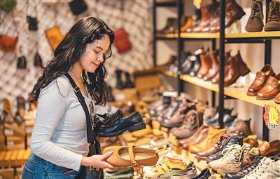今年一季度,经重庆江北国际机场口岸入境外籍旅客超13.7万人次,同比增长106%。图为在重庆市渝中区某小商品批发中心,外国游客在选购女鞋。新华社记者 黄 伟摄